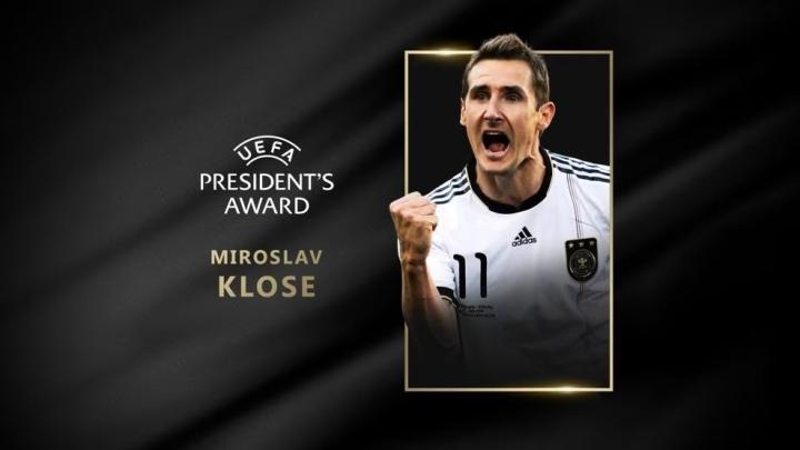 欧足联主席亚历山大-切费林选择米罗斯拉夫-克洛泽为2023年欧足联主席奖得主,以此来向他致敬。