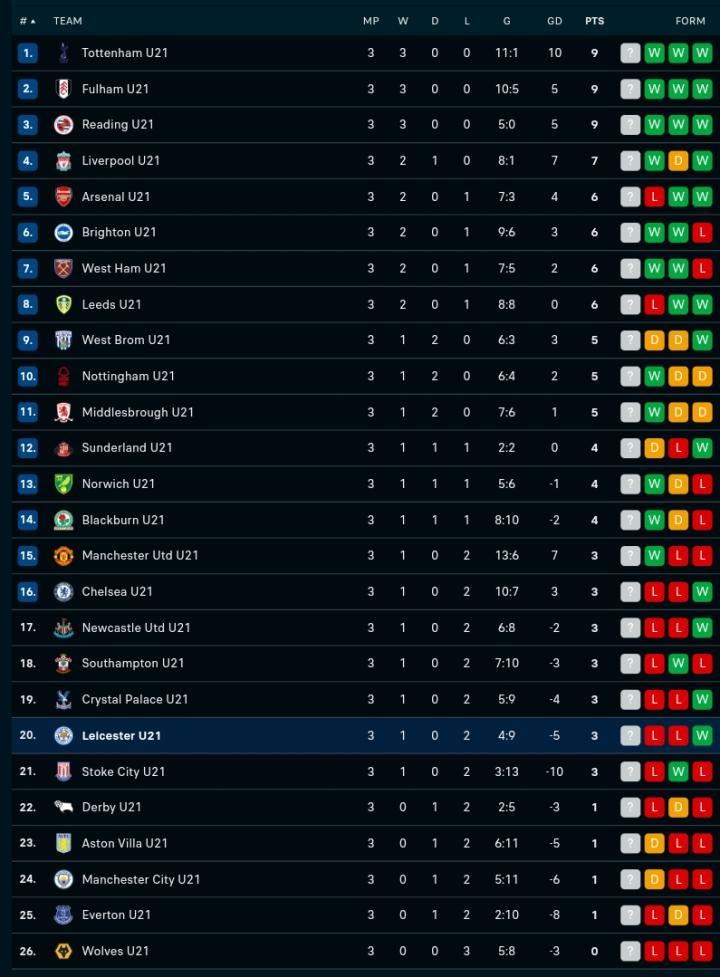 【莱斯特城U21战报】