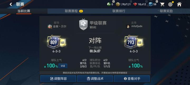 在当前比赛界面中,玩家可以调整自己的出场阵容和战术,查看对手信息,同时还可以对球队进行训话。
