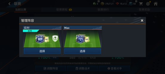 联赛模式中,玩家无需进入比赛实际操作,只需要在赛前进行各项调整,到比赛时间后,系统会自动进行比赛,玩家可在比赛结束后到联赛赛程界面查看赛果。