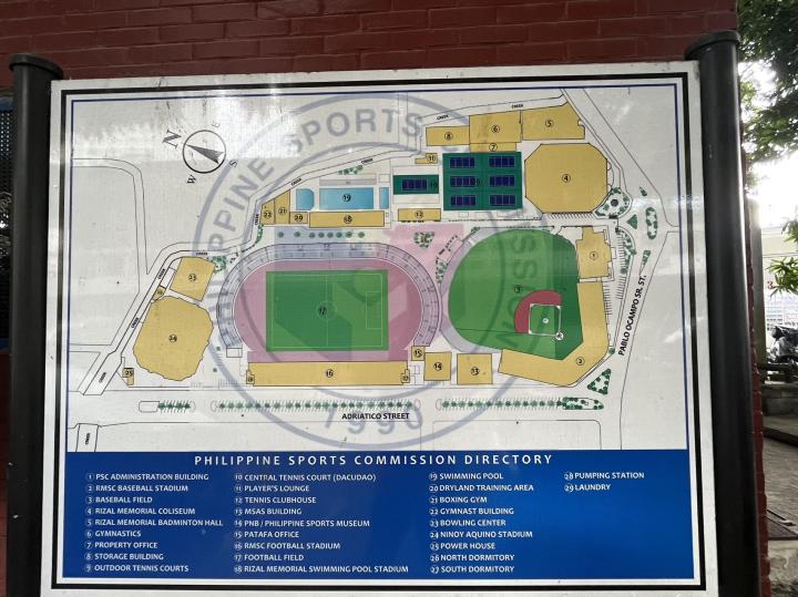 黎刹纪念体育中心相当于菲律宾国家体育局的训练基地,菲律宾国家体育局和许多运动协会都在这里办公,整个体育中心有足球田径场,棒球场,游泳场,网球场,体操馆,羽毛球馆,拳击馆,保龄球馆等诸多体育场馆和设施。