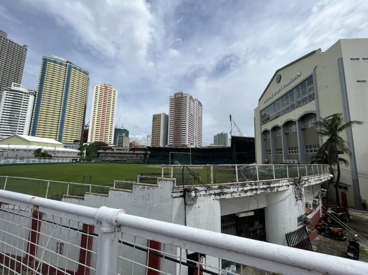 整个球场看起来还是比较简陋,菲律宾的国家体育场也只有一面看台有顶棚,剩下三面看台是连在一起的。九月菲律宾仍然是雨季,这里的雨说下就下,说停就停,还可能下的很大,远征军到时候要做好准备。可能是最近有比赛的原因,草皮保养得还不错,应该是人工草。在主看台有一些工作人员和保安,我在那三面看台转了一圈大概呆了半小时也没人管我。从主看台对面的看台下去就进入了黎刹纪念体育中心内部,去其他场馆拍了些照片,最后大摇大摆的从有保安的大门口出去了,全程没人问我来干嘛的。