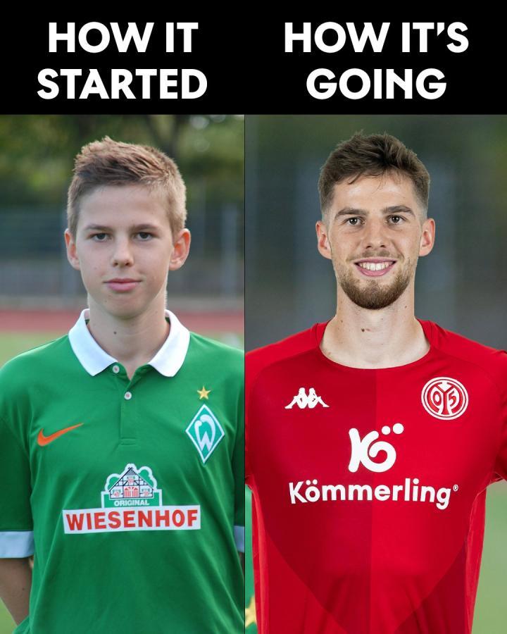 他是个坚强的人。从不来梅被放弃,在地区联赛被狼堡二队看上,用一个赛季就从一张彩票成为菲尔特的升级功臣,然后,他来到了美因茨。
