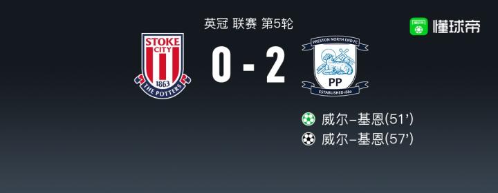 北京时间9月02日英冠 联赛 第5轮,斯托克城主场对阵普雷斯顿。普雷斯顿威尔-基恩梅开二度。最终比分0-2。