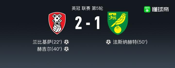 北京时间9月02日英冠 联赛 第5轮,罗瑟汉姆主场对阵诺维奇。罗瑟汉姆兰比基萨破门,赫吉尔破门。诺维奇法斯纳赫特破门。最终比分2-1。