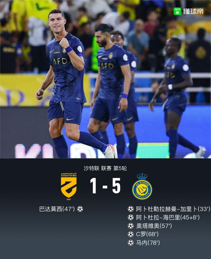 利雅得胜利5-1哈森姆,C罗1射2传+攻入职业生涯第850球