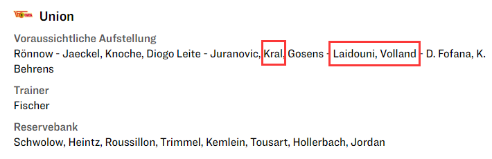 柏林联一直以来都以352框架为主,战术的关键在于把防守给蹲实了,集中保护中路,有球权后迅速推进,依靠长传找机会。这样一来,球队一般情况下,三个中场,都得是正儿八经的正印中场球员,都要能承担绝大部分的防守任务,而且其中还得有靠谱的后腰。而我们前文提到过,本赛季初,柏林联仅剩下三名健康的中场球员,今晚其中之一的阿伦森还要面临停赛,那么会怎么办呢?