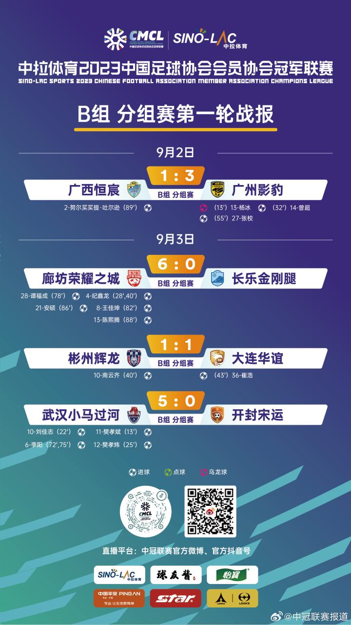 耀武酒肆工作室9月2日16:30,2023中冠总决赛B组第一轮展开交锋,广西恒宸坐镇贵港九凌湖训练基地一号场迎战广州影豹。上半场广州影豹先拔头筹,随后曾超、张校再入两球,比赛尾声阶段努尔买买提角球直接破门为恒宸扳回一球,最终广西恒宸主场1-3遗憾不敌广州影豹。