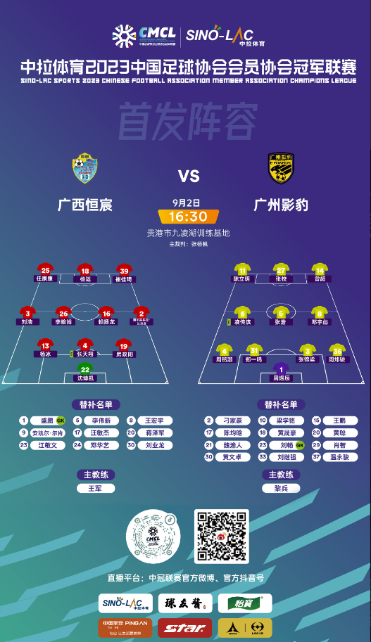 (资料据自、鸣谢:广西恒宸足球俱乐部、广州影豹足球俱乐部、中冠联赛官微,整理编辑:耀武酒肆工作室)