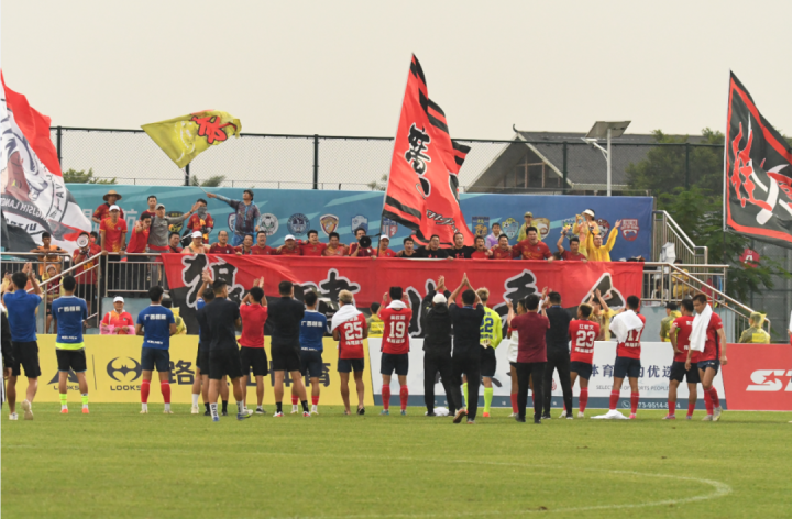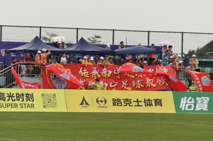 本场比赛受强台风“苏拉”影响,贵港九凌湖训练基地持续大风降雨,但恒宸仍有上百名球迷到场助威。他们不惧风雨和降温,高唱助威歌曲,一声声响亮的“恒宸队”响彻贵港九凌湖基地,用90分钟持续不断地呐喊为球队注入了动力。感谢远道而来的球迷,你们辛苦了!