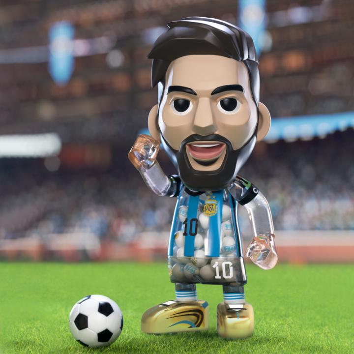 2022 年世界杯,阿根廷点球大战击败法国,时隔 36 年再次赢得世界杯冠军,成就三星荣耀!正版运动潮玩王牌化身阿根廷国家队系列三星版MoneyBall梅西手办,见证梅西作为阿根廷国家队队长圆梦卡塔尔,捧起大力神杯!