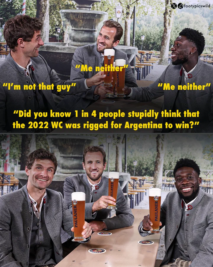 穆勒:你们知道每四个人里就有一个蠢货认为2022年世界杯阿根廷赢是剧本吗?反正我不是。