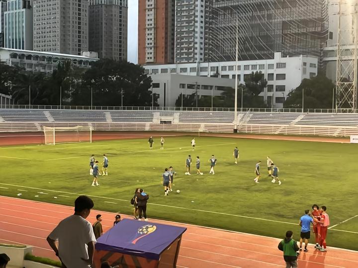 虽然没有什么观众,菲律宾杯的比赛现场的气氛还是不错的,从主持人播报到音乐互动应有尽有,在网络上也有直播,就是没有电子屏,看不到比赛时间,比分牌还是人工手动的,如果两个进球间隔时间太短工作人员还没来的及更新完就要去换下一个比分了,不知道亚冠的时候体育场的那个电子屏幕会不会启用。马尼拉这几天连续下大雨,黎刹纪念体育场的这个人工草皮排水功能倒是不错,连续踢比赛一点也没受到影响,对于山东泰山来说,做客马尼拉最需要注意的就是天气和场地问题了。