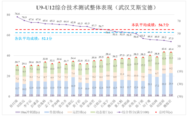 整体上看,参加本次测试的大部分球员具备一定的基本足球技术能力,表现较好球员的技 术能力达到良好水平,表现不佳球员的技术能力需着重提高。由于青少年阶段是发展足球技术 能力的“黄金期”,仍需要通过有效的训练提高基本足球技术能力水平。