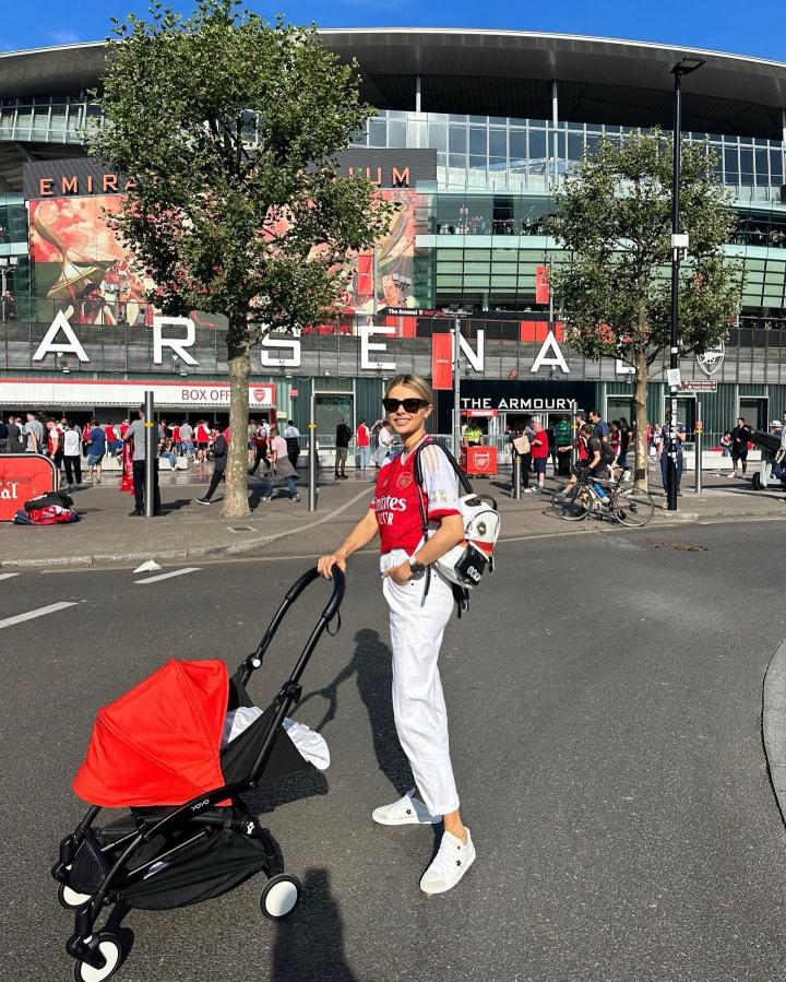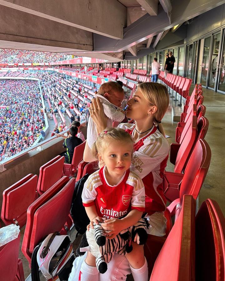 津琴科妻子晒带着刚出生的孩子到酋长球场看球照片