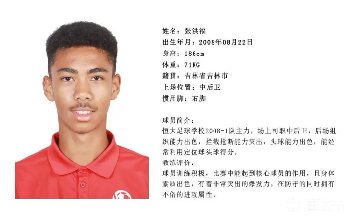 中国U15青年队队长张洪福率队打入东亚U15青年锦标赛决赛 正在中国进行的东亚足联U15男子足球锦标赛上,混血球员张洪福表现出色,带领球队打入决赛。作为球队队长的他在中后卫位置发挥稳健,也帮助中国队以仅失一球的成绩位列目前本届赛事失球数最少。出生于2008年的张洪福是恒大足校出品,此前曾效力于西班牙莫达拉腊体校U16B队(马德里大区U16荣誉联赛),他来自吉林长春,父亲是坦桑尼亚人。身高186的张洪福拥有出色的头球能力,在本届赛事对战北马里亚纳群岛的比赛中打入两球开启了自己的国字号梯队进球账户。他和队友也将在明日的决赛中对阵强敌日本队,让我们祝小将们好运。(图源来自微博)