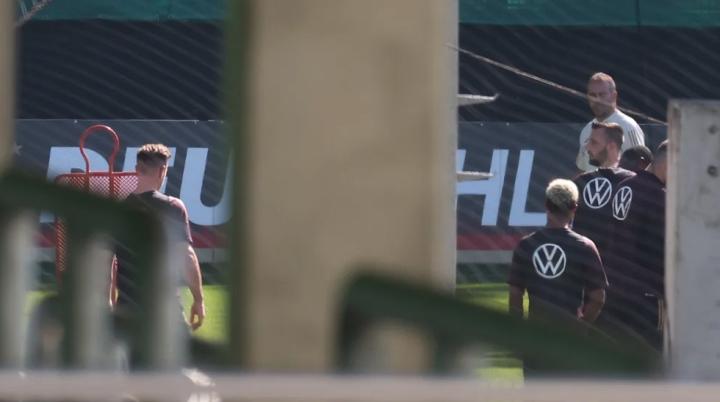 甚至训练场周围的公共通道也受到了监视,试图窥探一番的旁观者被要求离开。这项任务由德国足协的安保人员负责,而不是过去几天一直由训练场地的所有者沃尔夫斯堡足球俱乐部的秩序维护人员承担。
