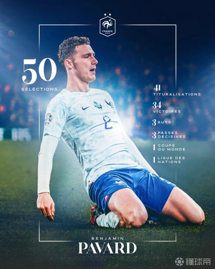 根据统计,这是现年27岁的帕瓦尔职业生涯至今第50次代表法国国家队出场,在这50场比赛中他贡献了3粒进球和3次助攻,帮助高卢雄鸡拿到了34场胜利,在此期间他还帮助法国队赢得了1次世界杯以及1次欧国联的冠军。