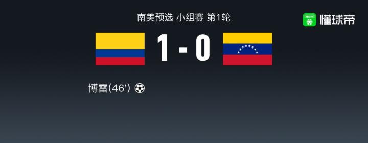 北京时间9月08日南美预选 小组赛 第1轮,哥伦比亚主场对阵委内瑞拉。哥伦比亚博雷破门。最终比分1-0。