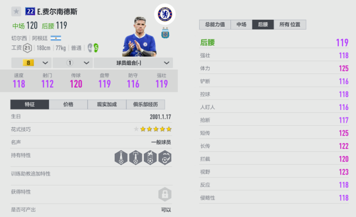 切尔西套后面有埃托奥、托雷斯、巴拉克等ICON TM赛季,22U恩佐的省工资特点很重要,这也是恩佐的重要领跑项。恩佐可以在后腰和中场来回切换,他的缺点是身体不够硬、对空拦截无力。