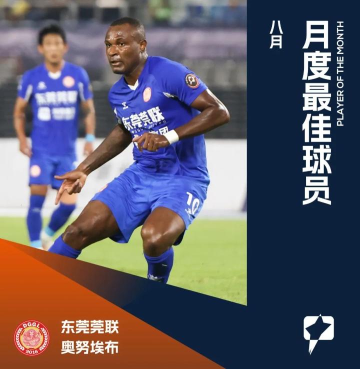 中甲联赛官方宣布,东莞莞联外援奥努埃布当选8月联赛最佳球员。