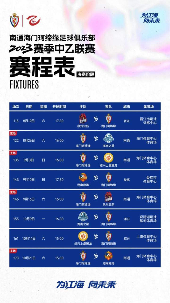 海报|Fighting 海门珂缔缘! 南通海门珂缔缘足球俱乐部 南通海门珂缔缘足球俱乐部2023-09-09 17:26中乙联赛 第十八轮湖南湘涛 VS 海门珂缔缘2023.9.10 周日 17:30娄底市体育中心直播平台:足球频道、懂球帝、雷速体育、直播吧FIGHTING!扛旗争先 一往无前!战斗 海门队;必胜 珂缔缘!展开更多