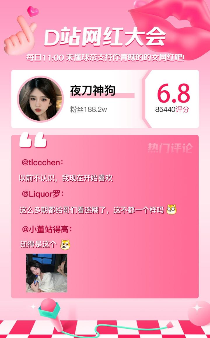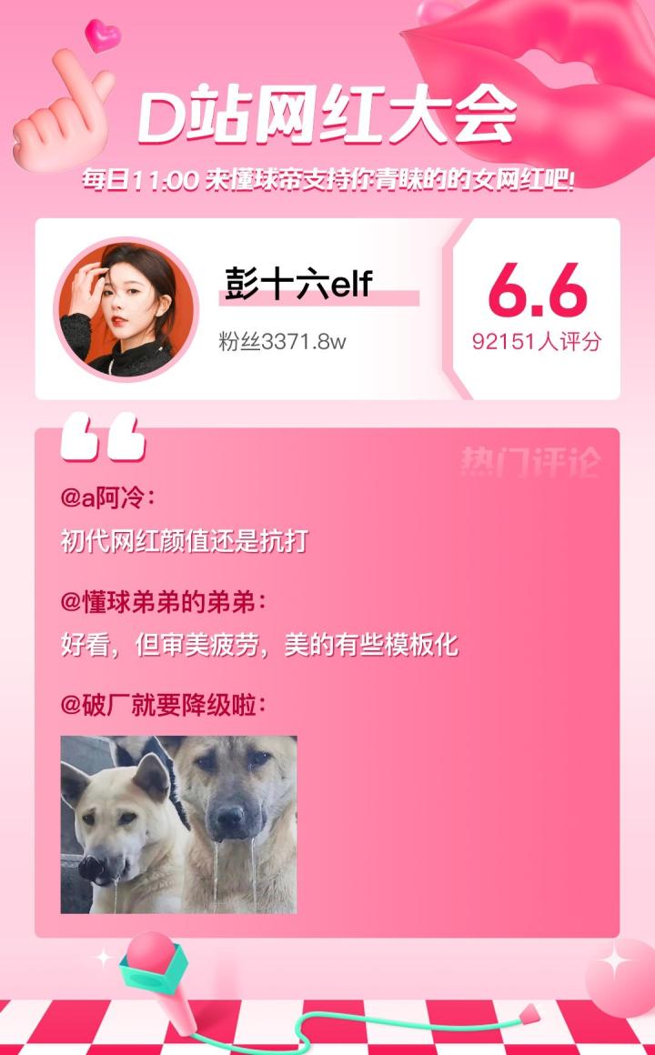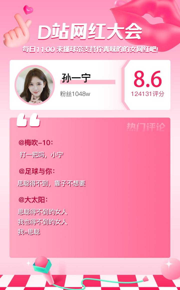D站【网红大会】网红喜爱值完整榜单如下