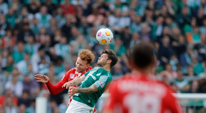 上赛季首回合在不来梅主场,美因茨队内流感严重,是残阵,然而取得的效果足够直接:双前锋,奥尼西沃负责接一点球与对抗,因瓦尔特森多次插上骚扰,中场施塔赫输出对抗,李在城和巴雷罗都投入进了拦截线路:这显著掐断了不来梅联系魏泽的方法。而菲尔克鲁格那一场表现堪称糟糕,他想要参与压迫,结果面前是身高不比他矮的哈克,当即泄气。美因茨两侧边路各推进一次即拿下比赛。