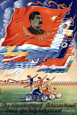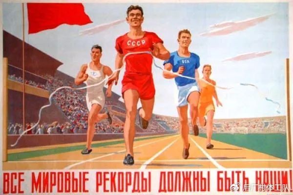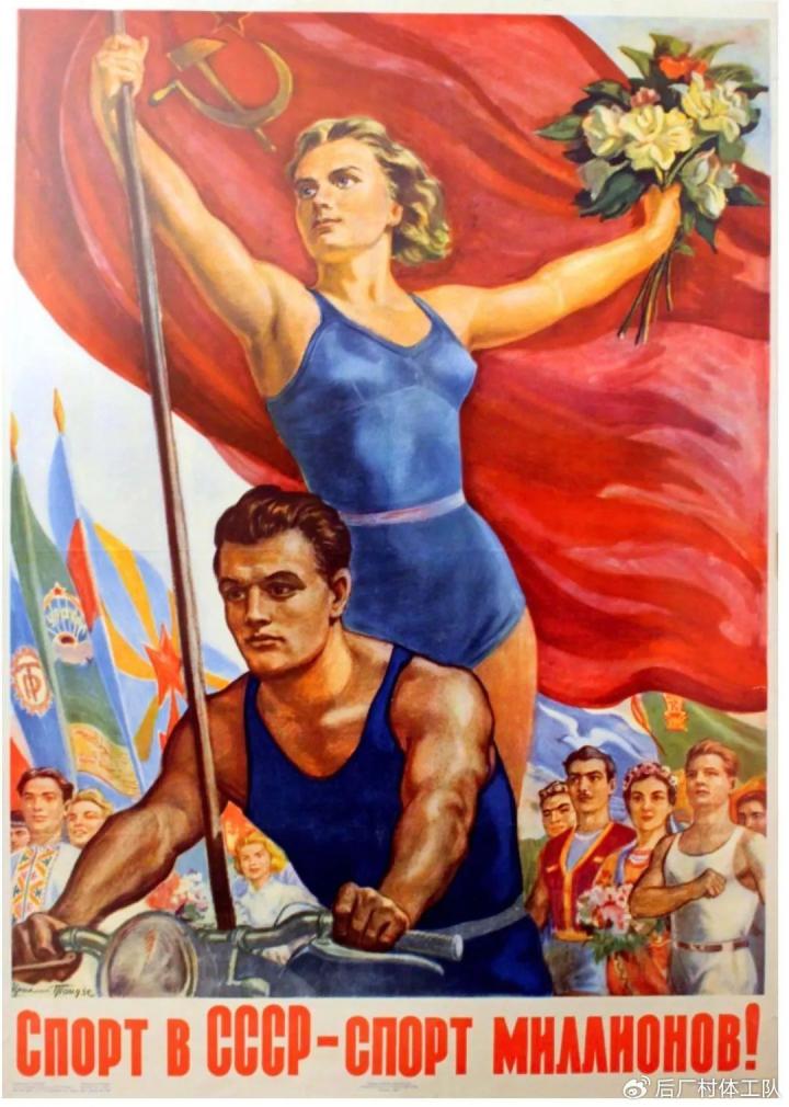 工厂和办公室四处可见体育运动的宣传海报。海报上的苏联运动员被描绘成一个个超级英雄。通过将运动员置于国家精英人群的地位,苏联希望影响年轻一代更加努力地训练,并继续以出色的体育成绩让国家感到自豪。