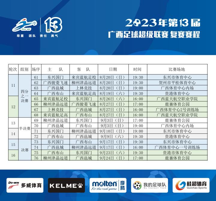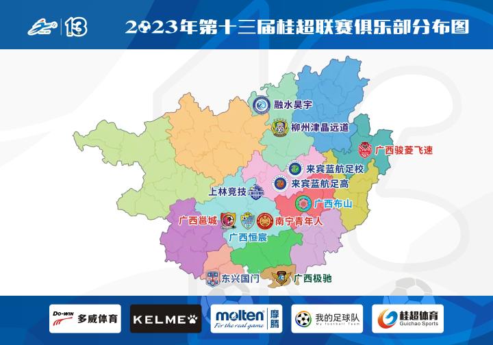 2023年第13 届广西足球超级联赛(桂超联赛),由中国足球协会指导,广西体育局和广西足球协会主办,广西桂超体育投资有限公司运营,桂超联赛已成功举办12届,是广西最高水平的足球赛事,俱乐部享有赛事极高的决策权和话语权,成为国内赛事中的亮点。本赛季继续延续主客场赛制外,5月中旬起还继续在桂超联赛期间,穿插进行两回合淘汰赛制的广西联盟杯赛事。