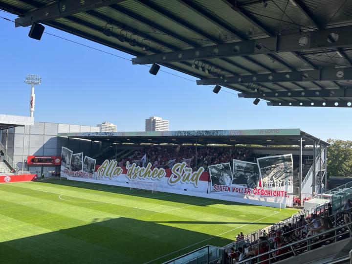 美因茨为南看台准备了一次告别,一次面对杜伊斯堡的友谊赛,得以让球迷们重新登上已经冷清许久的阶梯,用属于看台最好的方式来告别。球迷们仍会怀念那些时刻,看沃尔夫冈-弗兰克回来——是他的锐意进取让布鲁赫韦格从冷冷清清到座无虚席,以至于需要修建看台。看美因茨u19问鼎青年德甲,许尔勒和图赫尔就此扬名。看布鲁赫韦格男孩有且仅有一赛季的一舞,拔下角旗杆疯狂庆祝。。。