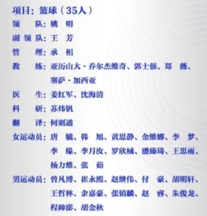 在周琦和周鹏受伤退出之后,归化球员李凯尔也是回到了美国,所以中国男篮补进了余嘉豪、曾凡博和程帅澎三名球员。在今天公布的亚运会中国代表团大名单中,乔尔杰维奇确定继续执教中国男篮,而助教团只剩下郭士强一人,翻译也被换成了广州龙狮队的何则通。