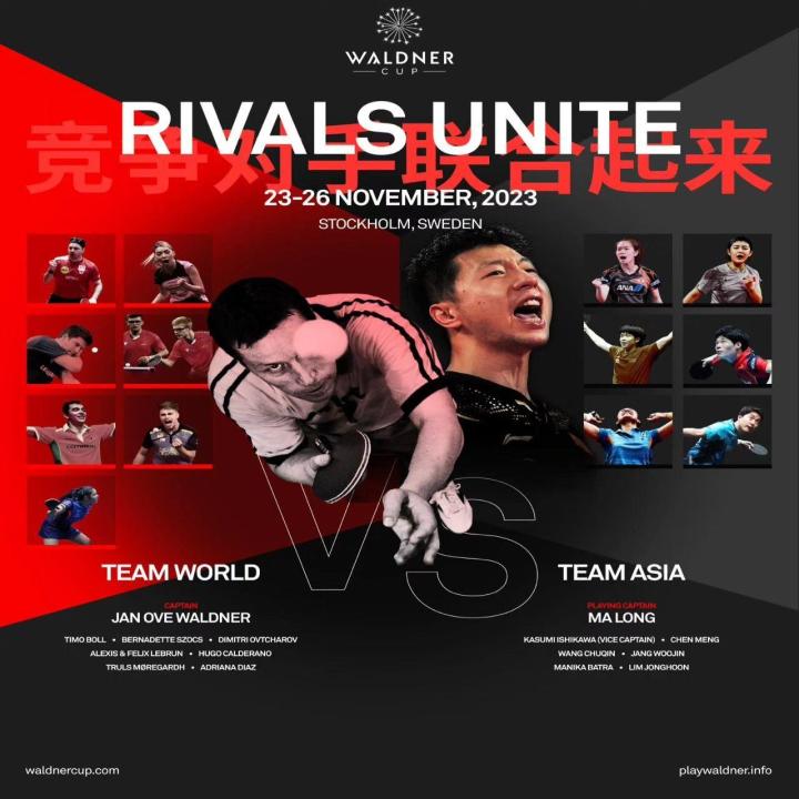 2023“刘国梁-瓦尔德内尔”杯正式官宣将于今年11月23日-26日在瑞典斯德哥尔摩开赛,马龙将率领亚洲明星队对阵世界明星队。