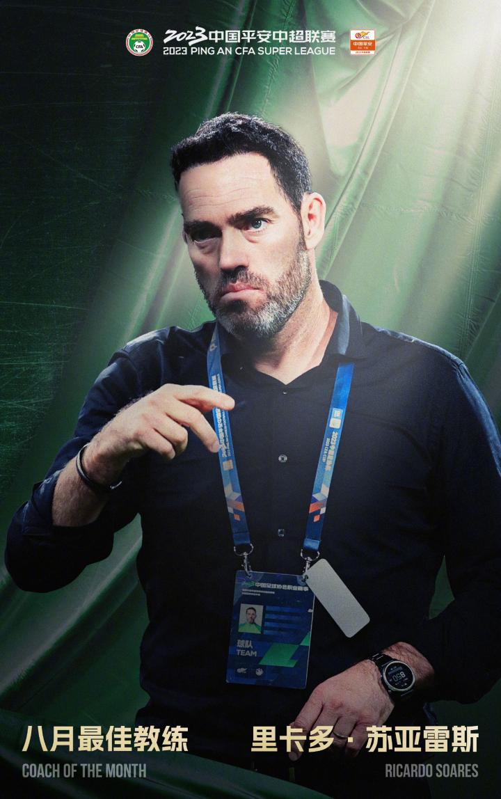 北京时间9月12日,中超官方消息,北京国安主帅里卡多-苏亚雷斯当选中超8月最佳教练。