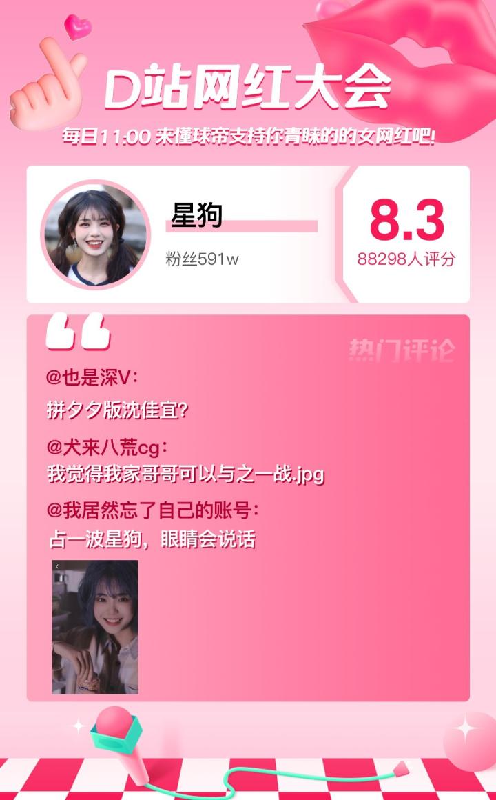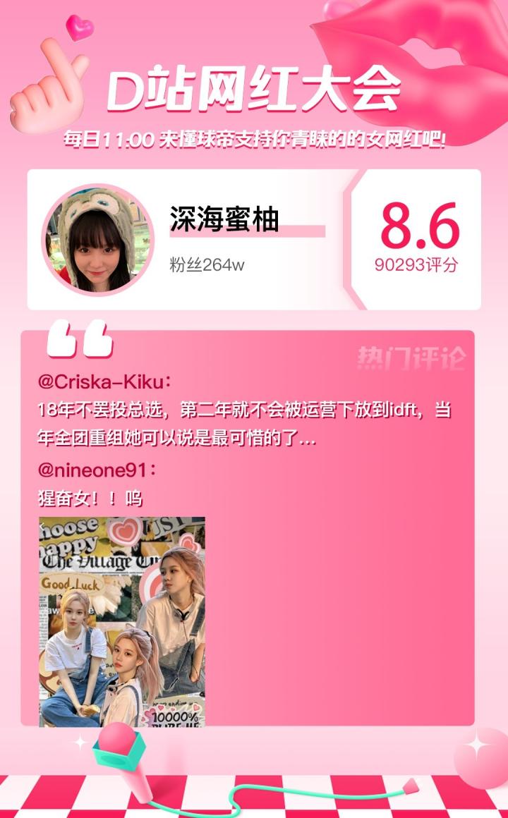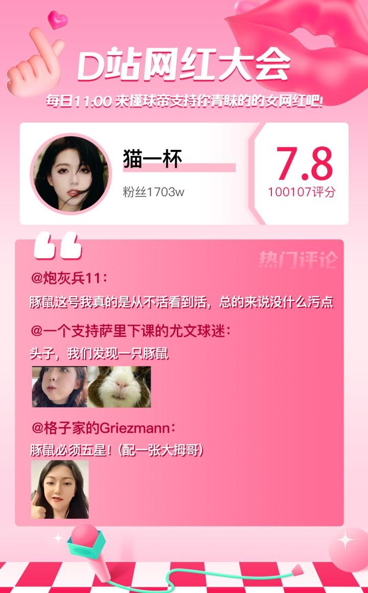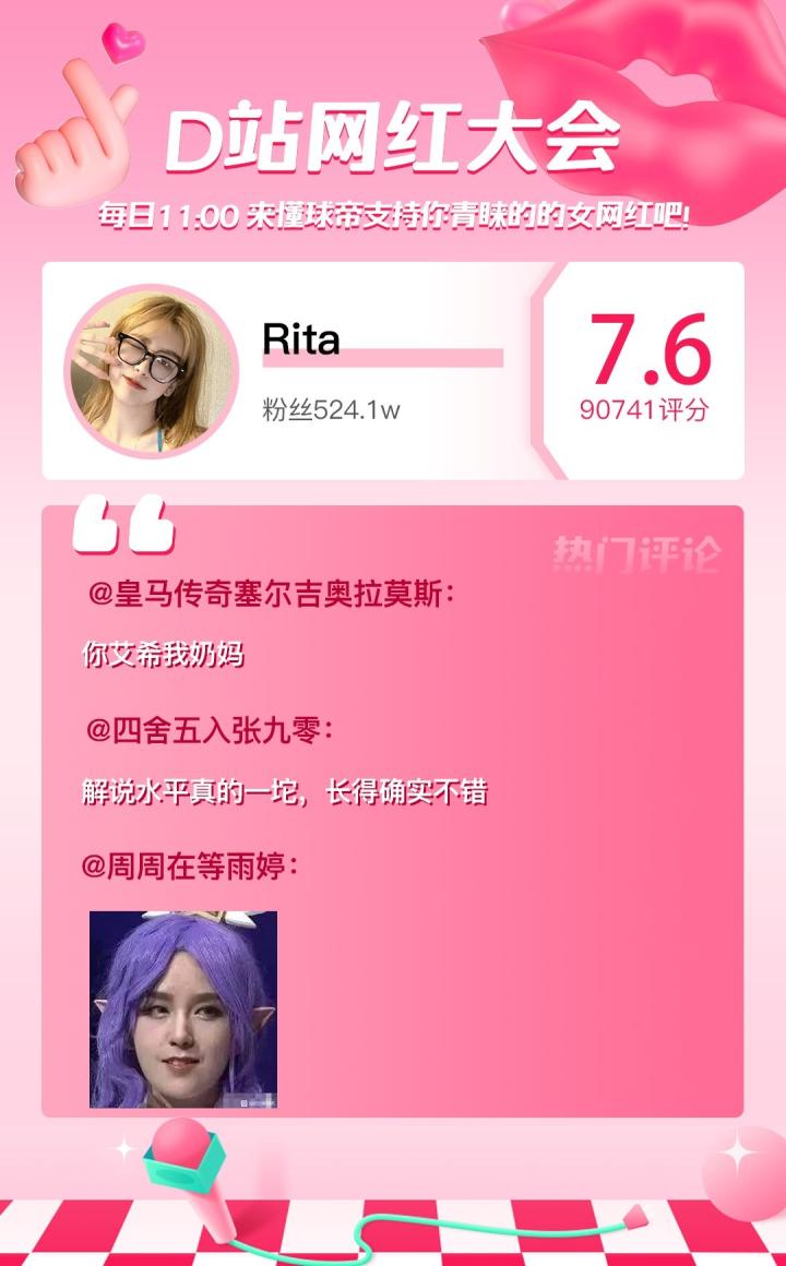 D站【网红大会】网红喜爱值完整榜单如下