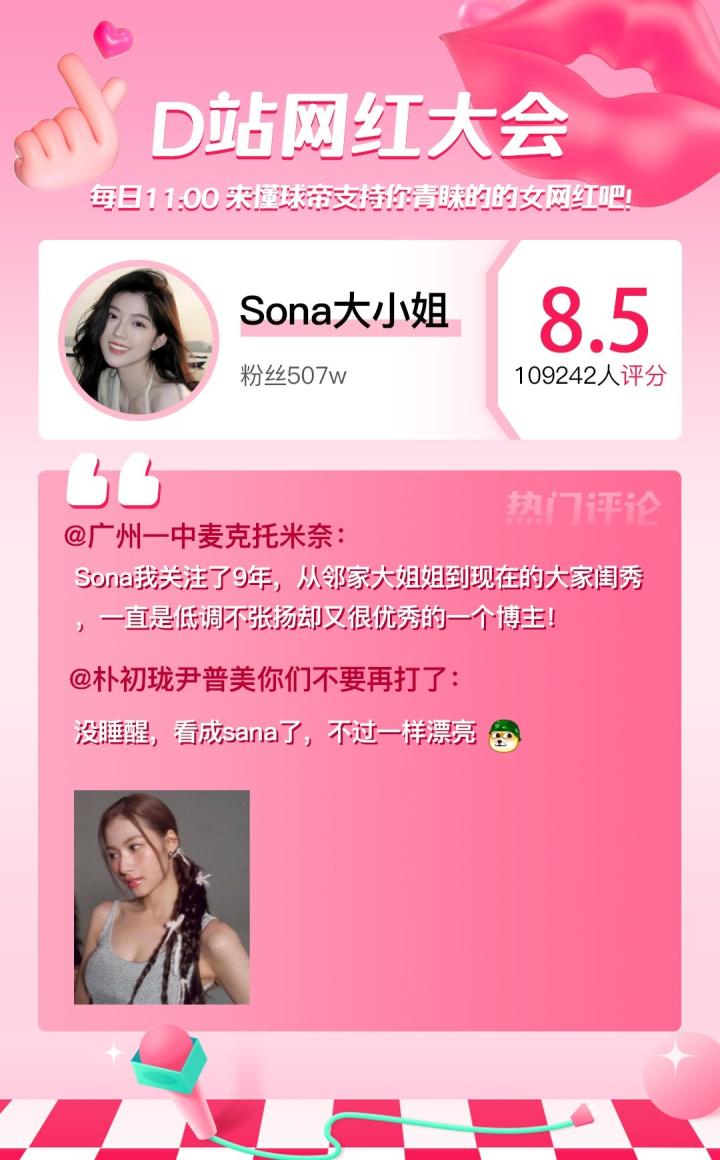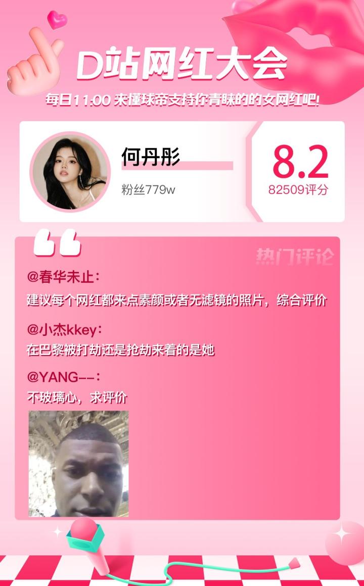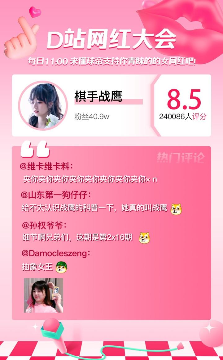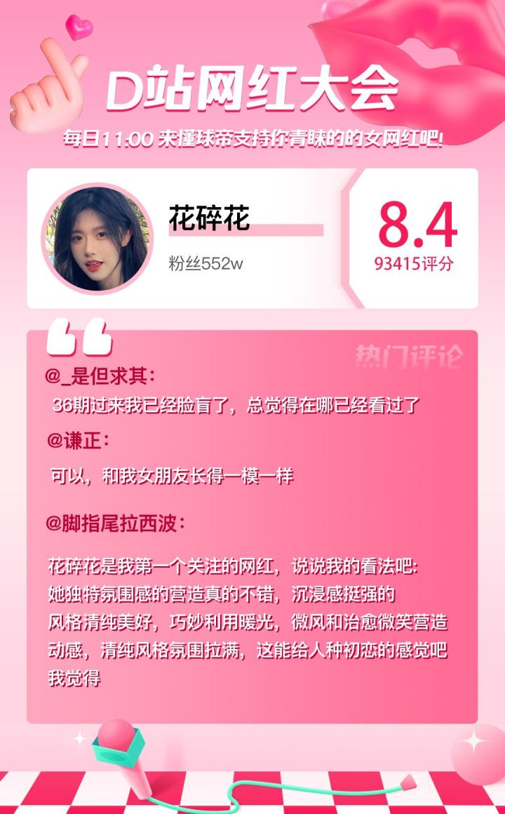 D站【网红大会】网红喜爱值完整榜单如下