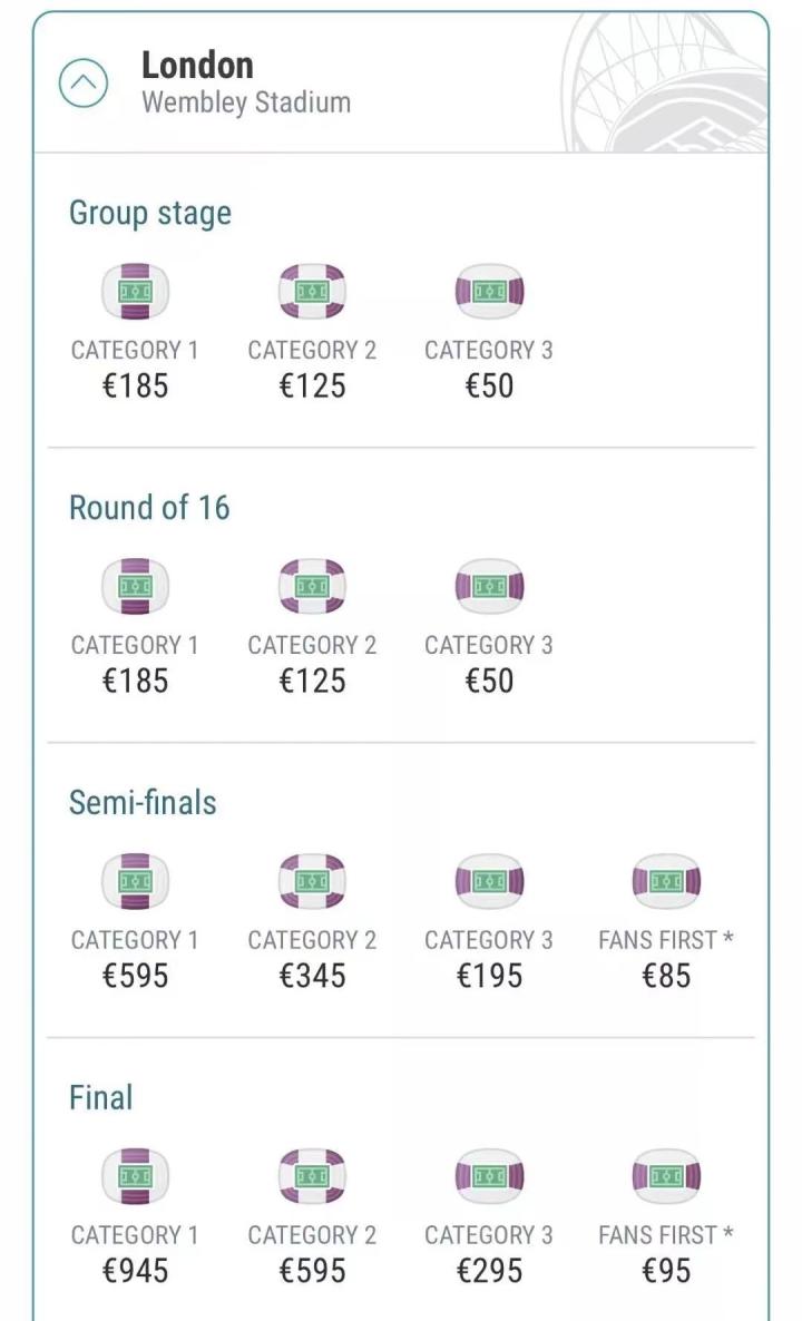 2024欧洲杯球票价格公布,价格30-2000欧元不等