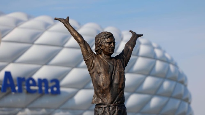 拜仁以特殊的方式向盖德-穆勒致敬! 盖德-穆勒是拜仁的伟大传奇人物。职业生涯中,盖德-穆勒在427场德甲比赛中攻入365球,在62场国际比赛中攻入68球。为了纪念盖德-穆勒,拜仁如今在安联球场的广场上为这位前世界级中锋揭幕雕像,这座雕像正是展示了他那典型的庆祝进球姿势。 拜仁荣誉注席赫内斯表示:“在拜仁,你总要保留过去和现在的东西。盖德是一名令人难以置信的球员,也是一个我们永远不会忘记的伟人。今天是纪念他的庄严日子。他和贝肯鲍尔是拜仁培养的偶像。” 2021年8月,这位德甲历史上最成功的射手过世,享年75岁。为此,拜仁为他树立了这座雕像,由青铜制成,是球员的1.5倍大,底座有4米多,重约1吨。 这座纪念碑是由兰道尔基金会发起的,很快就得到了拜仁俱乐部的高度认可。盖德-穆勒的遗孀乌斯基也出席了雕像的落成典礼。 这不是盖德-穆勒的第一座雕像。他的家乡诺德林根在去年11月已为他树立了一座铜像,展示了盖德-穆勒在1974年世界杯决赛2-1击败荷兰的比赛中攻进的制胜进球。