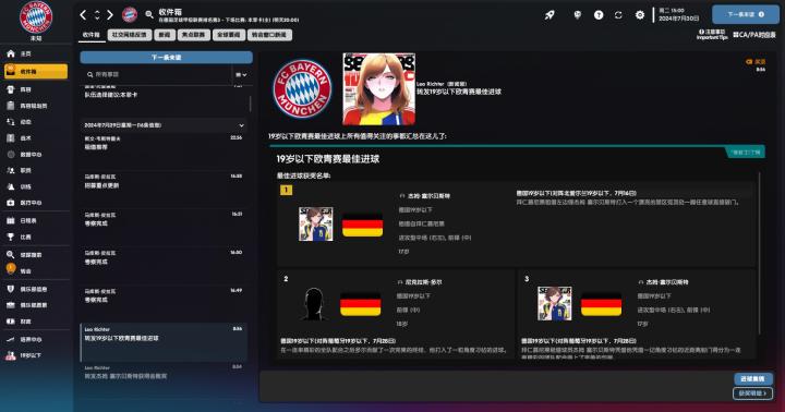 萨内降薪到25万欧元和拜仁续约3年。U19欧青赛闭幕,德国在决赛中2-1战胜葡萄牙夺冠,塞尔贝斯特5场6球将金靴纳入囊中,并包揽了最佳进球的第一和第三名。