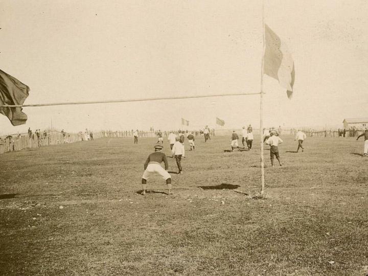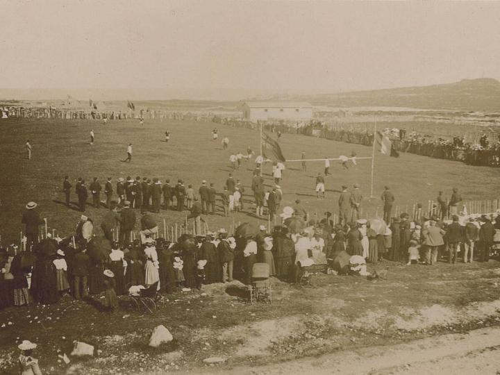 1906年, 来自布林半岛, 分属英法两国的两支球队进行了一场友谊赛, 比赛双方分别是来自法国的圣皮埃尔体育会和来自英属加拿大格兰德班克的一支球队。这场比赛是有记录以来圣皮埃尔和密克隆和加拿大纽芬兰岛的第一次足球交流。