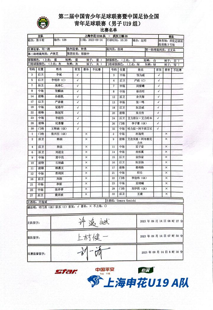 上海申花足球俱乐部北京时间9月14日,第二届中国青少年足球联赛暨中国足协全国青年足球联赛(男子U19组)第三阶段第五轮上海申花U19B队所在的A组与U19A队所在的B组的比赛在云南昆明继续进行。