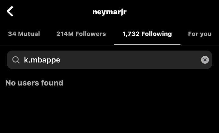 现在,姆巴佩和内马尔两人的社交媒体账号已经互相取消关注。
