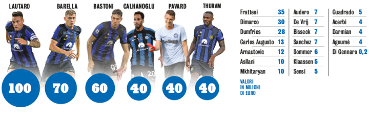 数百万和可持续性:无论你想要与否,在国际米兰,这两个词一定要和谐相处。融合的效果很好,效果很好。看看蓝黑军团的升值名单:一个又一个,升值又升值。球队身价5.492亿欧元,加上米兰的5.502亿欧元,这场德比的总身价超过了10亿欧元。观察国际米兰,有一个方面很有趣:蓝黑军团从2020年夏天开始改变其企业战略,不再为转会市场提供大量资金,人们感到不安。新冠疫情前的阵容,目前只剩下七名球员,包括森西和桑切斯,他们都回到了基地。从那一天之后,新增了五座奖杯(一座联赛冠军奖杯和四座杯赛奖杯),这样一支冠军队伍肯定能为预算带来数百万欧元的收入。这应证了一个理论:有限的投资不意味着没有冠军。