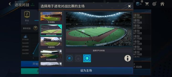进攻对战模式中,玩家可以选择自己用于进攻对战比赛的主场,点击下方的【当前主场】按钮即可选择自己已经解锁的主场场景,选择完成后点击【设为主场】,即可启用。
