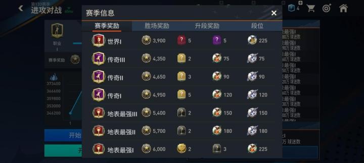 进攻对战模式的奖励分为赛季奖励、胜场奖励、升段奖励三项,点击【赛季信息】按钮可以查看各项奖励内容。