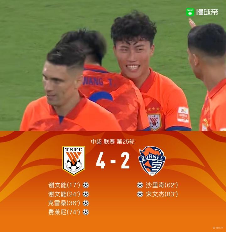 第24分钟,王彤将球回做送出助攻,谢文能推射远角破门完成双响,山东2-0海牛!