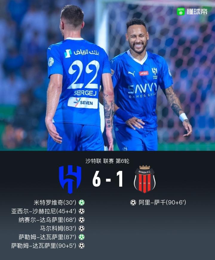 利雅得新月6-1利雅得体育,内马尔首秀造3球,达瓦萨里双响