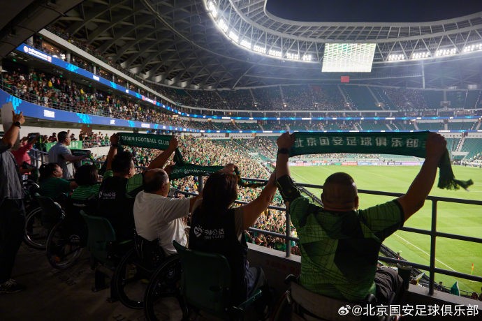 国安官方表示,回归新工体之后,在北京市足球运动协会、中超联赛北京赛区的大力支持下,几乎在每一个新工体的比赛日都会邀请社会各界的球迷代表,特别是来自偏远山区的青少年和残障朋友到现场观赛,体验赛场氛围。未来我们也希望与社会各界一起持续优化创新,推动更多、更丰富的公益慈善活动落地新工体,构筑首都体育公益新地标。