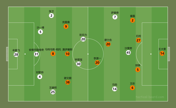 下半场的基调就此定下,萨里奇与龙威深度收缩,帮身后的三中卫尽可能处理威胁球,康瓜与宋文杰在边路尽量向前突破,沙里奇做无球策应,力图在泰山队略显松散的后防线中寻求反击机会。