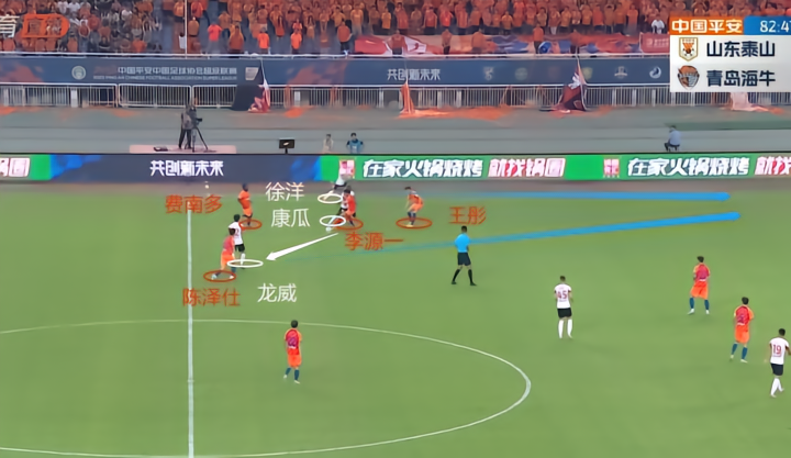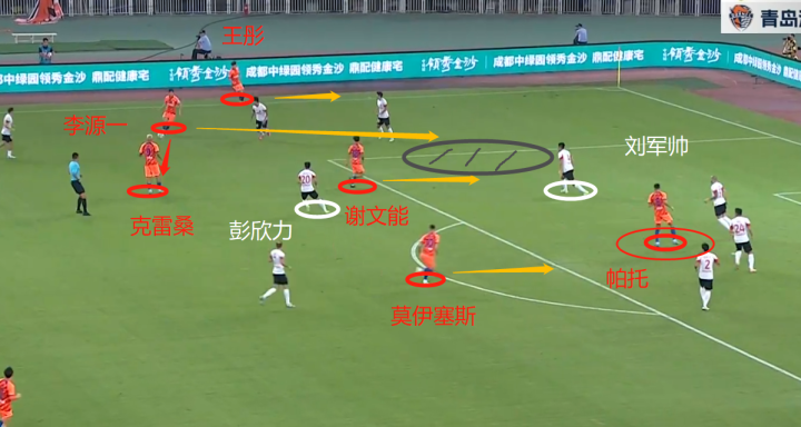 反观泰山,崔康熙治下的泰山队展现出了不错的战术纪律性与执行力,高压逼抢效果很不错,前场球员,特别是几个外援之间灵活的交叉换位很见功力。